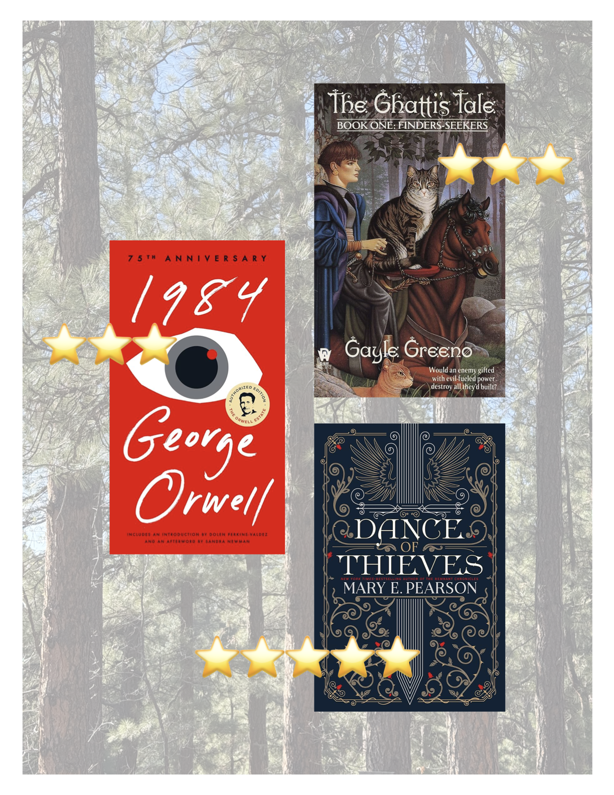 The Ghatti’s Tale - Finders Seekers: 3 stars - I thrifted this series strictly because the covers looked interesting and I LOVE cats. So a fantasy world where a cat breed bonds with humans and they speak telepathically? Count me in! Two things to make sure you enjoy if you want to read this series: 1) really dense world building - they go a lot of places and do a lot of things; 2) lots of characters - I could have used a list of everyone because some get mentioned like twice and there’s a lot of background characters. Despite feeling like this book got super wordy at times, I thought it was a fun and unique story and I’m definitely looking forward to the rest of the series!